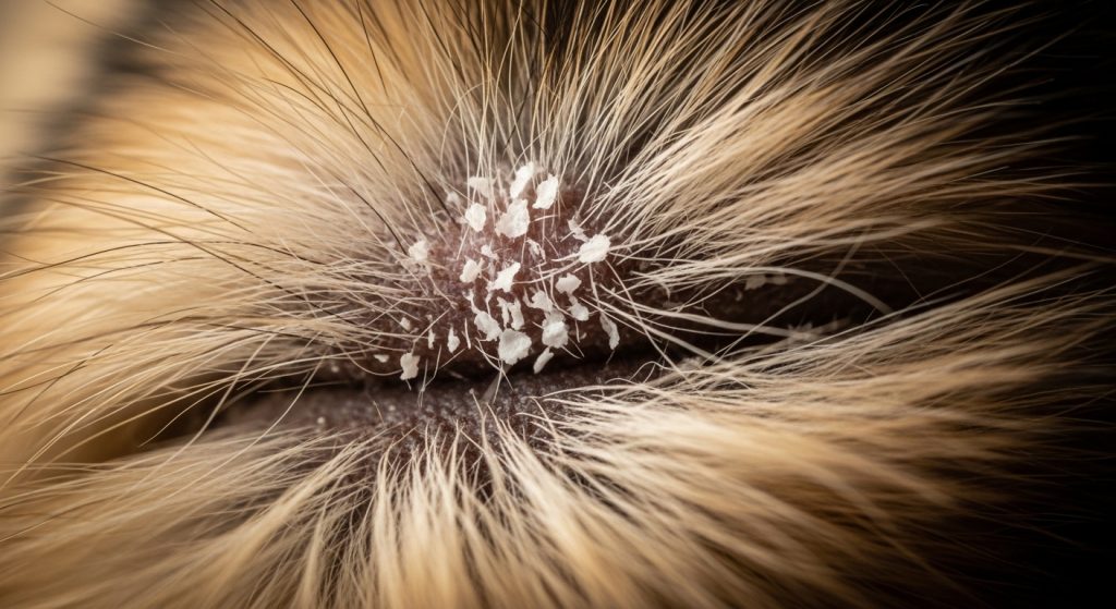 Where to look: Base of the tail, inner thighs, belly, and lower back. Look for tiny black specks in the fur — that’s flea dirt (flea feces).